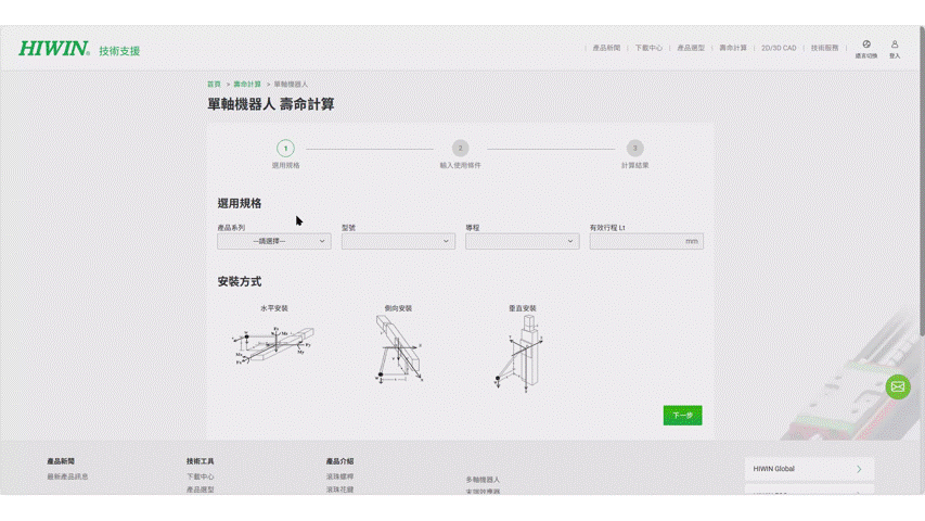 此壽命計算工具可依據實際應用條件(如負載、行程、速度等)快速預估單軸機器人的使用壽命,協助使用者在設計階段即掌握產品可靠性與維護週期,進而提升整體系統效能與穩定性。